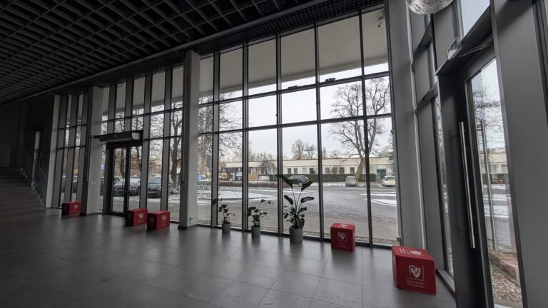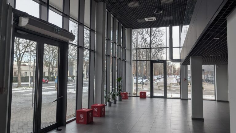 Wejście do sali odbywa się poprzez wejście główne do budynku L2. Klucze do sali do pobrania na portierni budynku (po potwierdzeniu rezerwacji zostanie wystawione upoważnienie do kluczy).